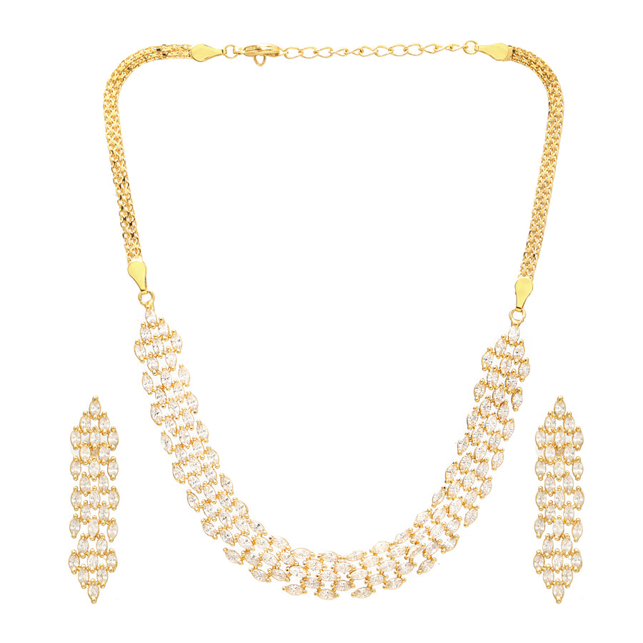 The name Diamora is a fusion of “Diamond” and “Amora” (love), symbolizing a love that shines with the brilliance of a thousand lights. It embodies both the sparkle of precious stones and the warmth of eternal devotion. The rows of marquise-cut stones shimmer like diamonds, each one reflecting moments of love and celebration. The choker-style layering sits close to the heart, signifying intimacy, elegance, and strength. The gold-plated structure adds richness, elevating the brilliance of the stones into timeless luxury. Diamora is not just a necklace—it is a declaration of love and light, a jewel that celebrates both passion and elegance, crafted for women who shine as brightly as the diamonds themselves.