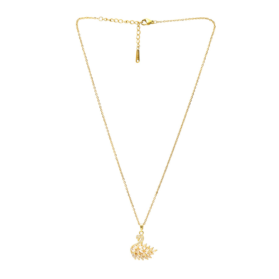 The name Swanira blends “Swan”—the eternal symbol of purity, love, and elegance—with “Ira”, a word that signifies beauty, strength, and radiance across different cultures. The swan-shaped pendant represents grace in motion, like a swan gliding effortlessly across calm waters. The gold-plated finish reflects timeless luxury, turning nature’s elegance into wearable art. The stone-studded detailing shines like drops of water catching the sunlight, celebrating purity and brilliance. Swanira is more than a necklace—it is a tribute to women who embody quiet strength, eternal grace, and the luminous beauty of the swan.